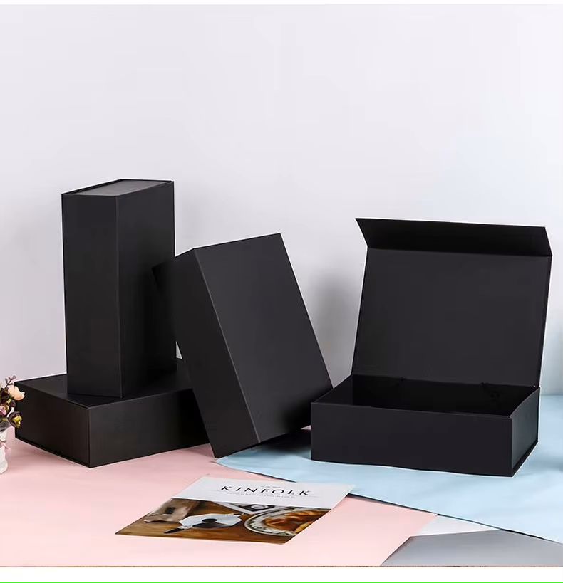 2mm Thick Hard Black Paperboard Gift Box Foldable One-Piece Flip Cover Fresh Flower Magnetic Design for Packaging Gift