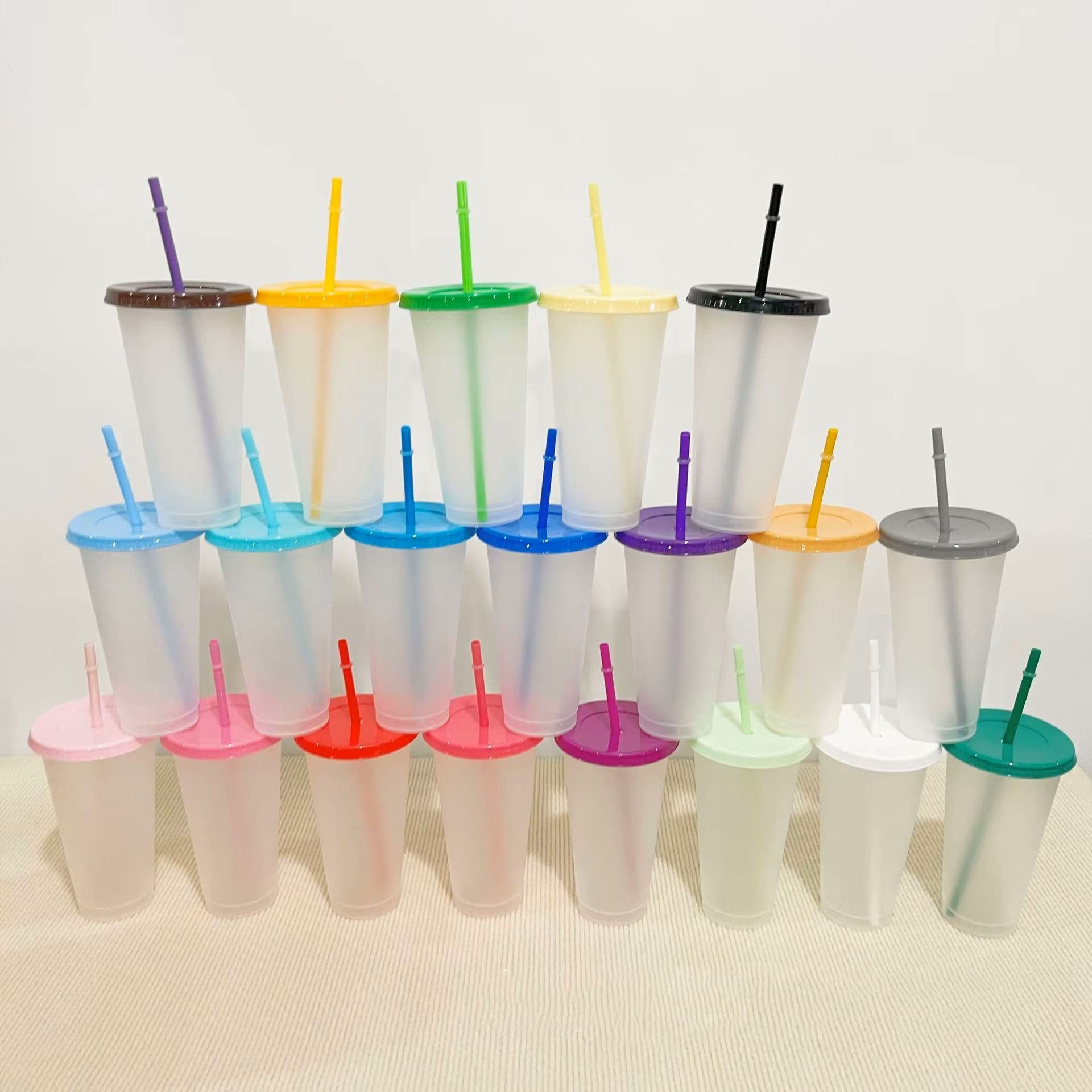 700ml Large Capacity Plastic Water Cup with Straw, 24oz PP Material, Summer Hot-Selling Temperature-Sensitive Color Changing Cup