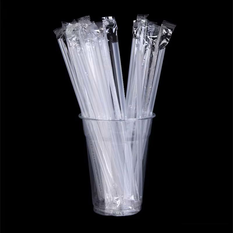 Individual Wrapped PP Plastic Transparent Disposable Straws Christmas Decorations for Bubble Tea Smoothie Milkshake Drinking