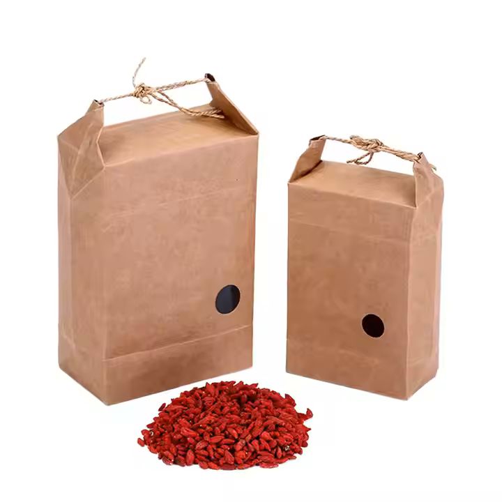 High Quality Custom Printed Logo Kraft Paper Handbag with Clear Window for Gifts Pizza Milk Sushi Pet Food Jelly Salad Shopping