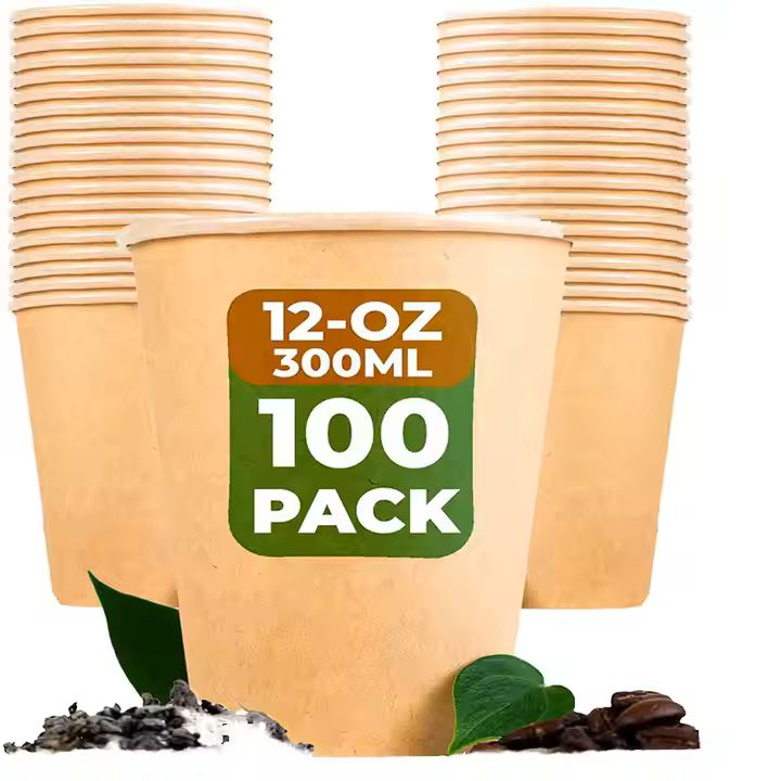 Factory Price Biodegradable Food Grade Kraft Paper 12oz 16oz 20oz 24oz Container No Plastic Single Wall Cup With Paper PP Lids