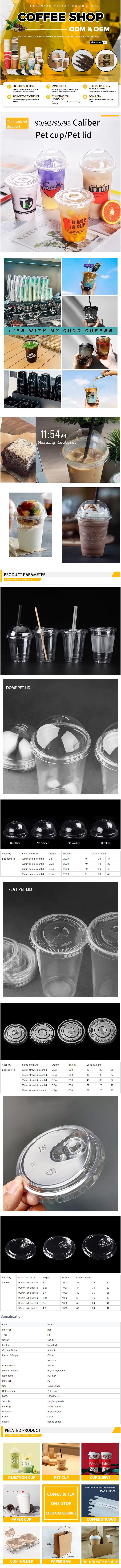 Cup Dome and Flat Transparent Lid Cold Drink Cup Disposable PET Plastic Disposable Cold Drink Cups Lid