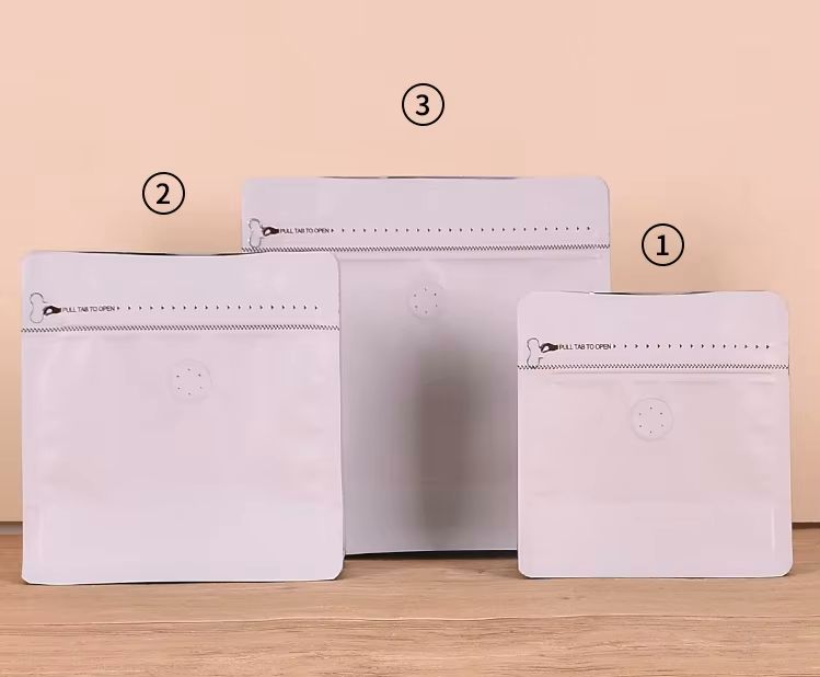 New Trend Customized Aluminium Film Flat Bottom 250g 500g 1kg Paper Coffee Bean Bags with External Zipper and Air Release Valve