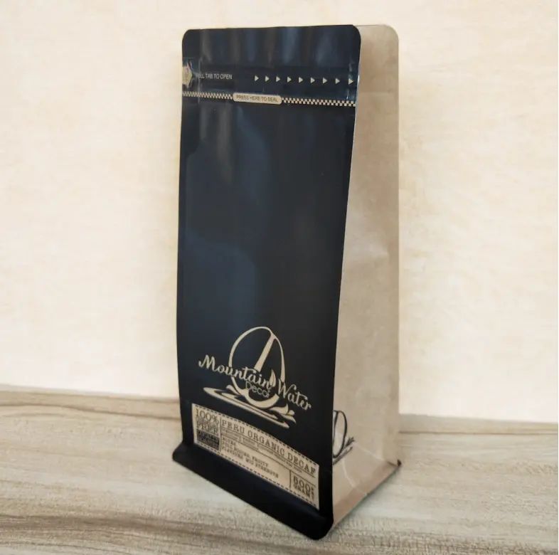 Reusable Zipper Flat Bottom Coffee Beans Bag Stand-Up Design with Air Release Valve Paper Material S