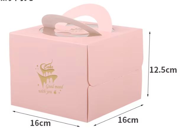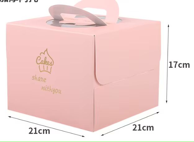 Hot Sale Customized Logo Two Handles Birthday Cake Box Cardboard Square Packaging Paper Carton Box With Clear Pvc Window