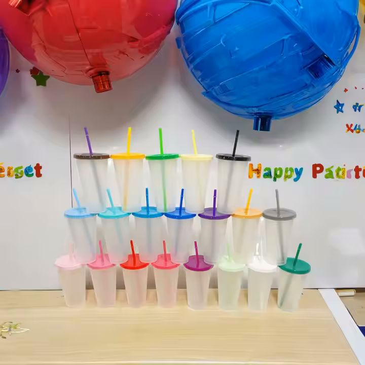 700ml Large Capacity Plastic Water Cup with Straw, 24oz PP Material, Summer Hot-Selling Temperature-Sensitive Color Changing Cup